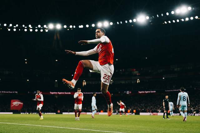 第11分钟,阿森纳踢出默契配合,马杜埃凯右路直传,本-怀特插上传中,梅里诺头槌破门,连续两轮联赛进球,1-0!