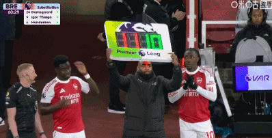第61分钟,阿森纳换两人,萨卡和埃泽联袂登场