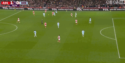 第11分钟,本-怀特送出传中,梅里诺头球破门!阿森纳1-0布伦特福德
